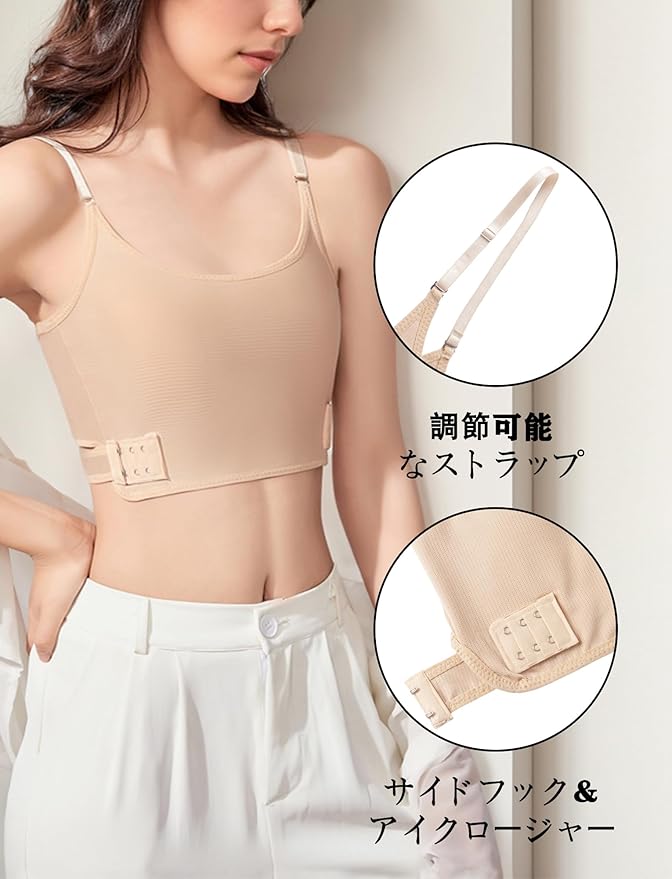 【デザイン】この一着で、自然に胸を小さく見せます。脇高のデザインのおかけでお気になる脇肉や背中のハミ肉をしっかり押さえて綺麗なシルエットを演出できます!