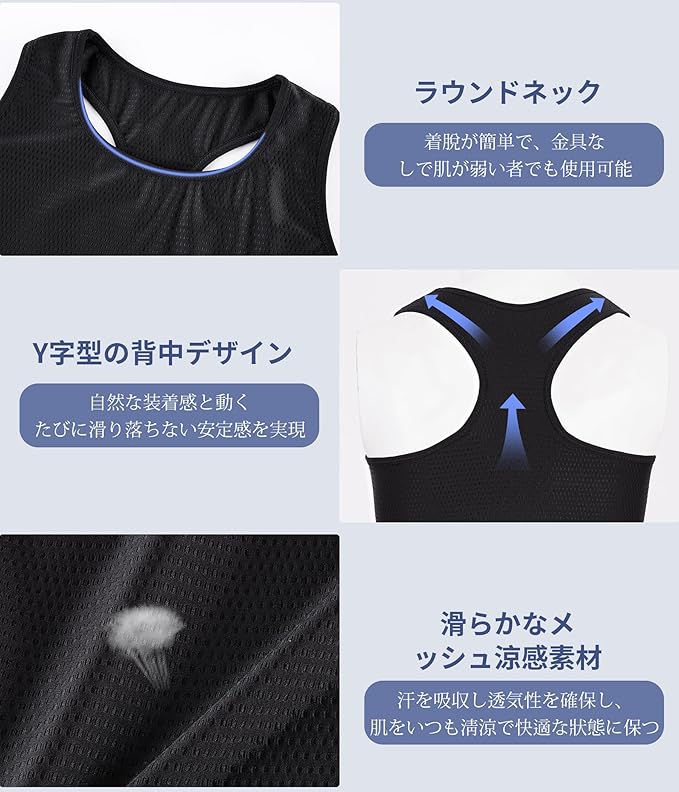 2:【革新的なY字型バック設計】:ブラトップ タンクトップは通気性と吸湿性に優れたスポーツ用メッシュ生地を使用し、常に涼しさをキープ。この乳首目立たないインナーのY字型バックデザインは、着脱の手間を減らしながら、内側に快適に収まり、目立たないサポートを実現します。