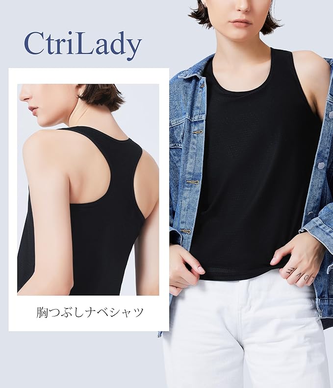 3:【解放された快適さ、息吹を感じるデザイン】:ナベシャツ タンクトップの円形ネックデザインは、あなたに自由を与えます。この胸潰しブラには金属を一切使用せず、敏感な肌を守りつつ、快適な着心地を提供します。胸二重 タンクトップの一着で動くたびに呼吸する双層の高弾性ネット生地で、あなたの体を優しく包み込み、一日中爽やかな気分を保ちます。