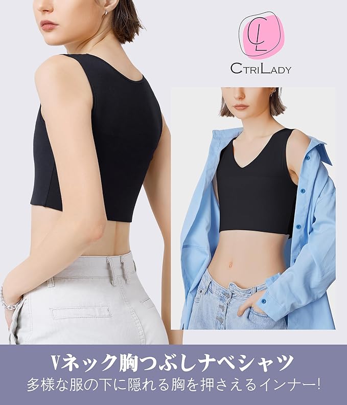 [CtriLady] ナベシャツ 胸潰し 補正下着 ブラトップ タンクトップ レディース 胸を小さく見せるブラ ノンワイヤー スポーツブラ 揺れない さらしブラ 和装ブラジャー 通気性 | oioioichan