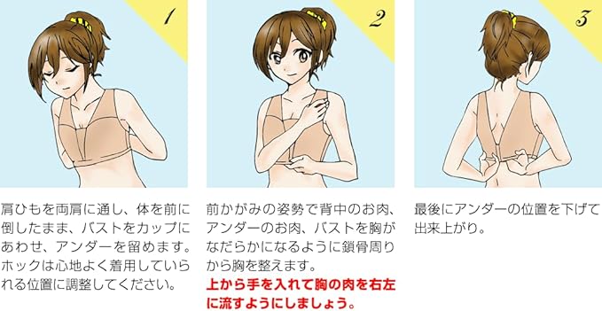 特徴 :2段3列フック ・ B~Hカップをほぼ平らなバストへ変身 ・ 長時間着用でも苦しくない