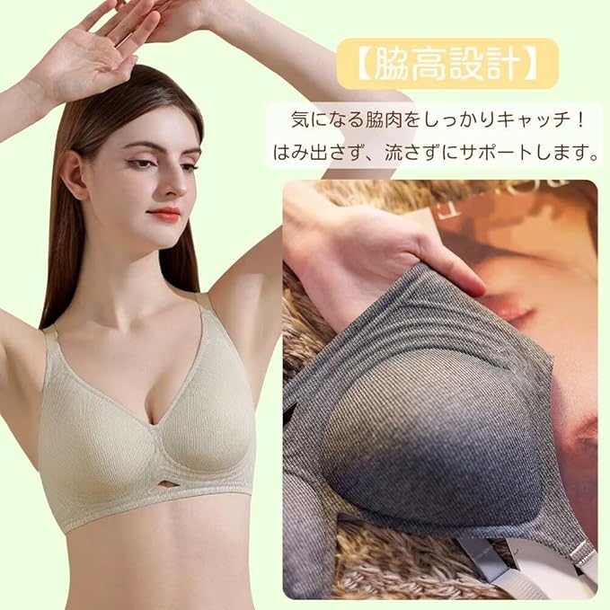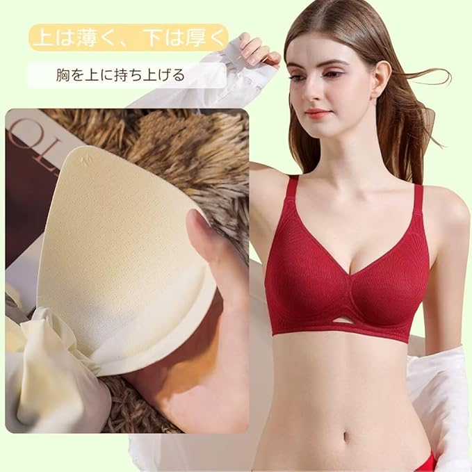 高品質な素材を使用し、ソフトな肌触り、シームレスで刺激のない装着感を実現。 ノンワイヤーブラジャー、とても柔らかく、バストにフィットしやすく、自然なシルエットで、締め付け感がなく、快適な着け心地です。