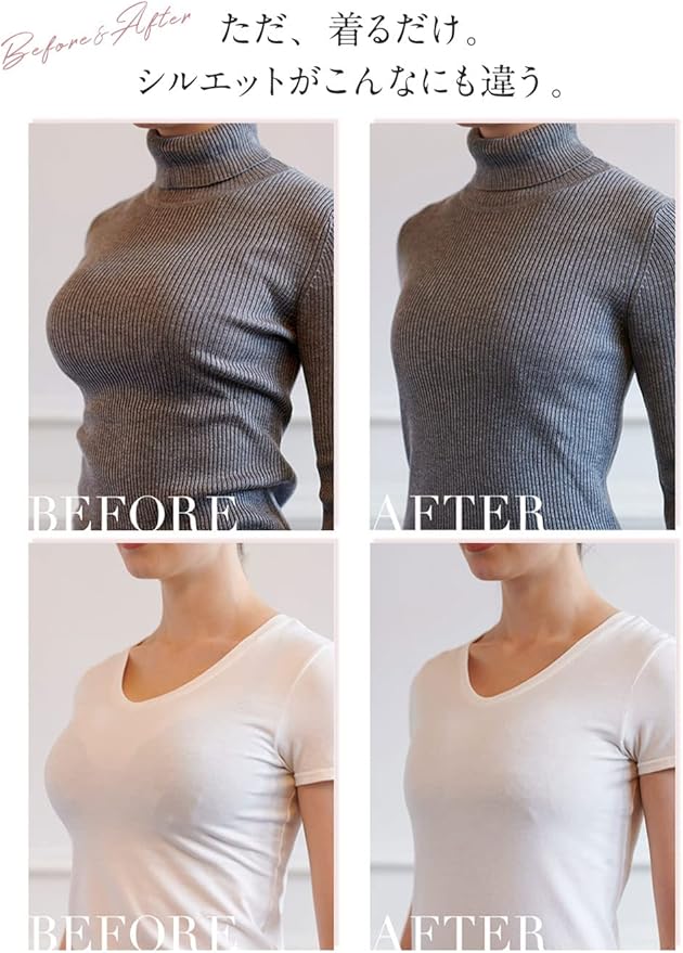【バストの膨らみ、立体感を抑えた独自のカップ】より胸を小さく見せるようカップの膨らみは極限まで抑えつつ、自然で美しいバストラインを実現。胸を押し潰すだけじゃない独自設計だから、ストレスフリー。