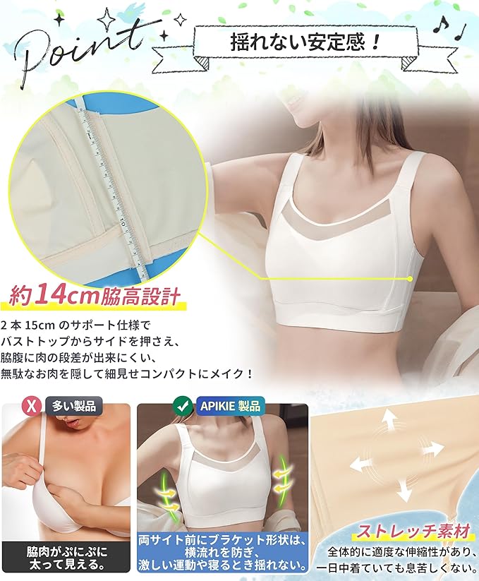 [APIKIE] 胸が小さく見せるブラ 小さく見せるブラ 【Eから約Dに小さく見せるブラ・蒸れない】・三重安定感・見痩せ・ホールド感 ブラジャー 小さく見えるブラ 脇高 ブラ 安定感 ノーワイヤブラ シームレスブラ 大きいサイズ | oioioichan
