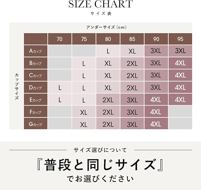 【サイズ】L~4XL (詳しくは商品画像をご確認ください。)【ホック】後ろホック4段4列調整