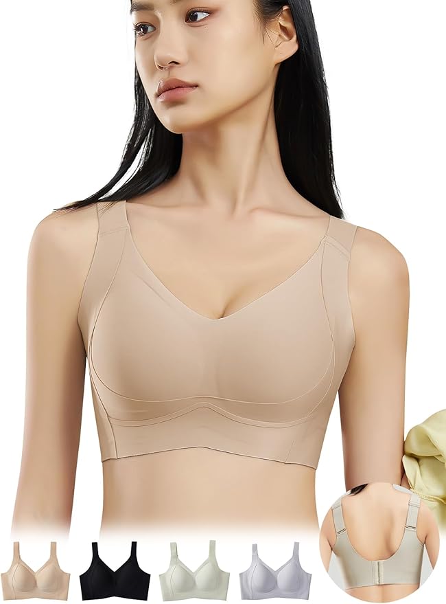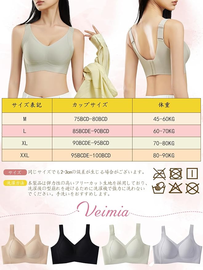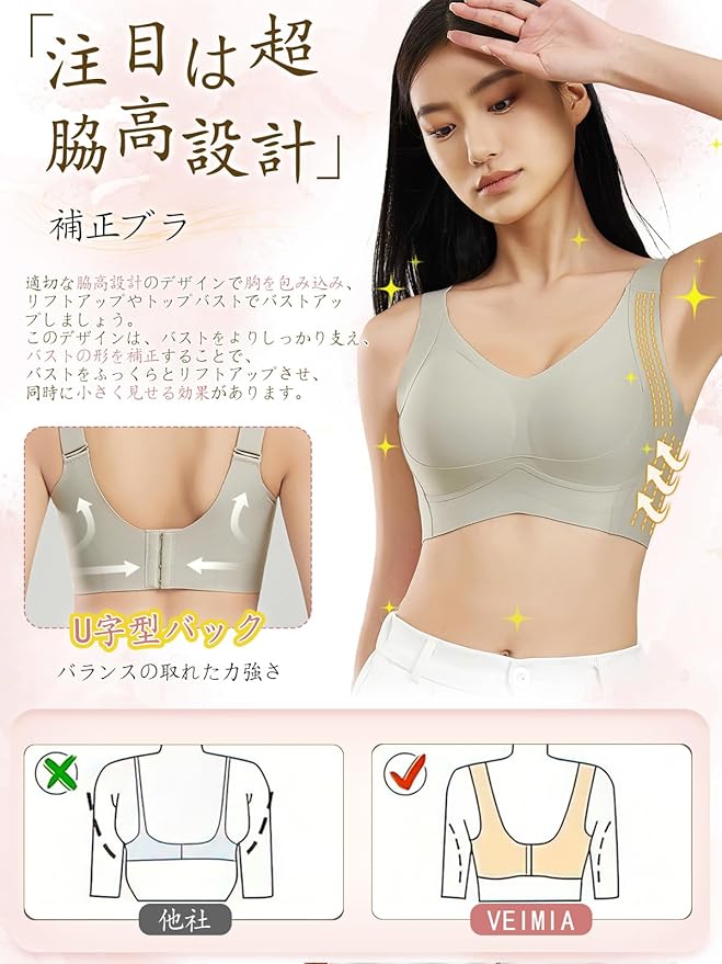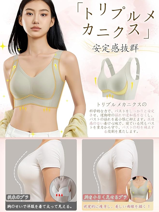 [veimia] 胸を小さく見せるブラ 小さく見せるブラ ブラジャー【安定感UP・ゼリーサポート】ノンワイヤーブラ 垂れた胸補正ブラ・揺れ軽減・見痩せ・ホールド力 ブラジャー 脇高設計 昼夜兼用 シームレスブラ 大きいサイズ | oioioichan