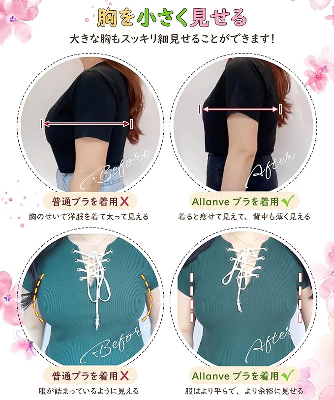 [Allanve] ブラジャー 胸を小さく見せるブラ 【瞬間痩せて見え・驚い安定感・大きいサイズ】 フロントホックブラ 脇高 前開き シームレスブラ 垂れ防止 ナイトブラ ノンワイヤーブラ 締め付けず 通気性 柔らかい | oioioichan