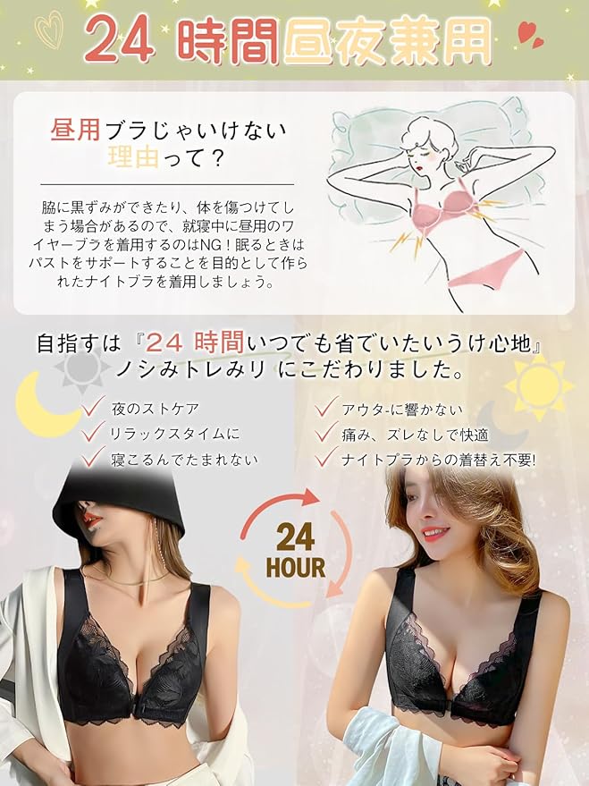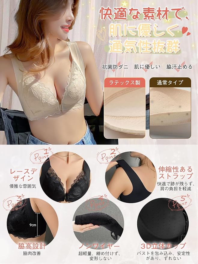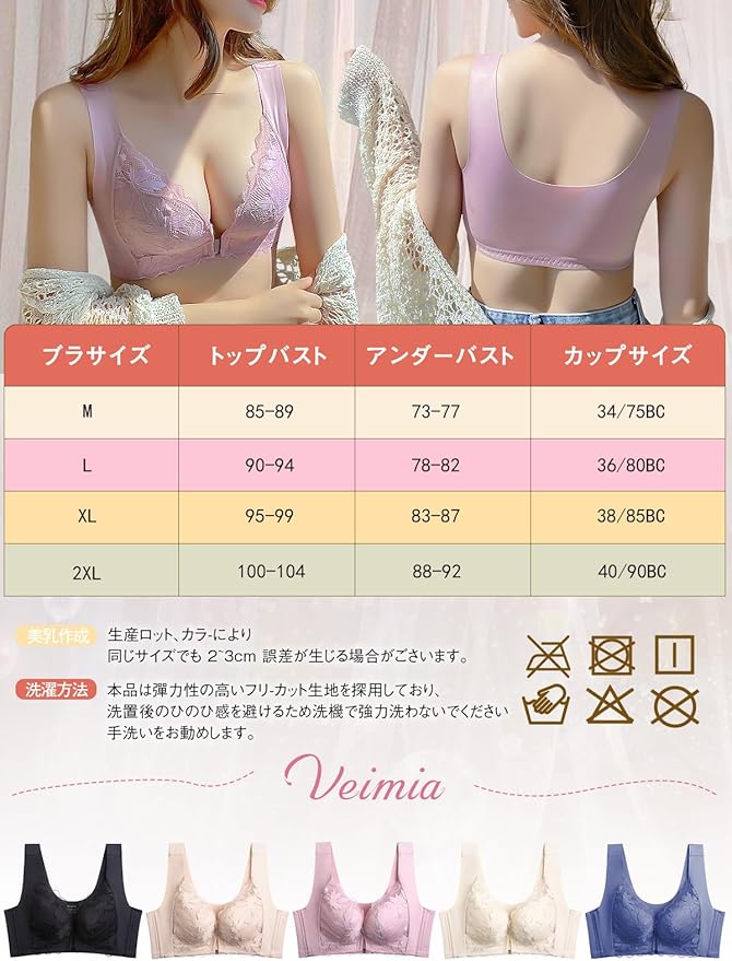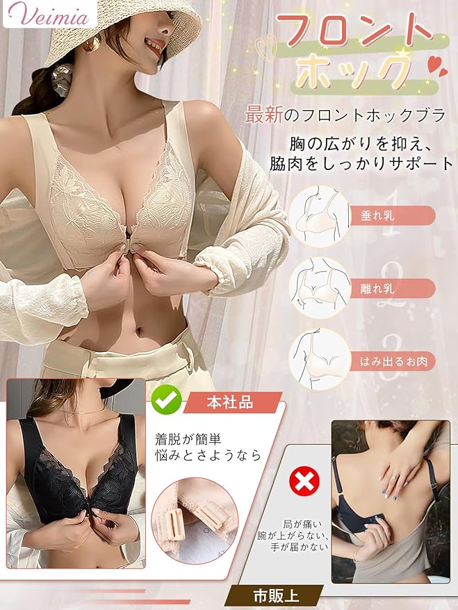 [veimia] ブラジャー 前ホック 胸を小さく見せるブラ 小さく見せるブラ ぶら 【胸を揺らさない安定感・見痩せ】脇高ブラ 垂れた胸補正ブラ 美胸 レースブラ ノンワイヤーブラ ふわっとスリムブラ 24時間昼夜兼用 | oioioichan