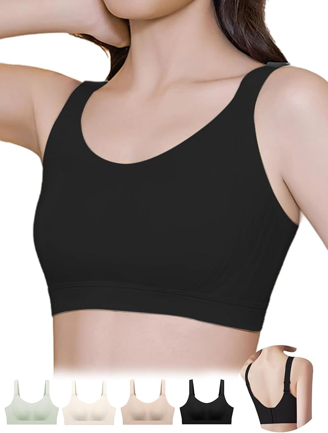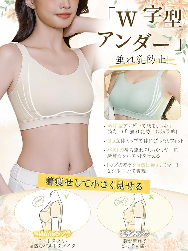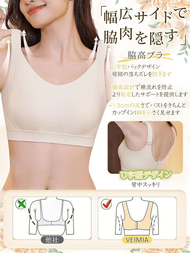 [veimia] 胸を小さく見せるブラ 小さく見せるブラ ぶらノンワイヤーブラ 大きいサイズ 脇高ブラ 垂れた胸補正ブラ 高弾性 ブラジャー 通気性 揺れ軽減・見痩せ・ホールド力 シームレスブラ ナイトブラ 24時間使える