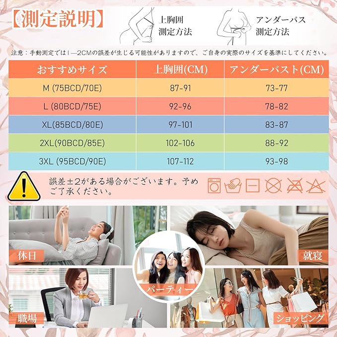 【セクシーな雰囲気を演出】洗濯機で洗っても変形しにくい、洗剤残り心配がない。シンプルなデザインでシーンを選ばないシームレス小さく見せるブラ、浴衣ブラジャー、和装ブラ、産後ブラ、スポーツブラ、さらしブラ、ウエディングドレス、ガウン、白シャツ、洋服などでも大きな胸もスマートに魅せ、全体がすっきり。ブラジャー固定されたパッドで洗濯はやすい!