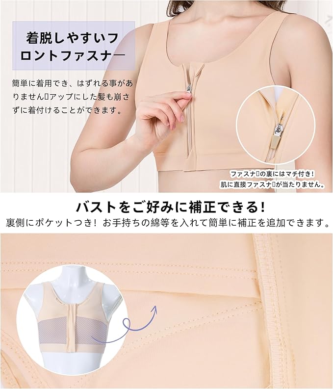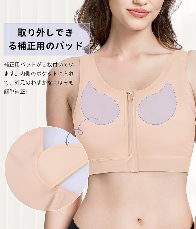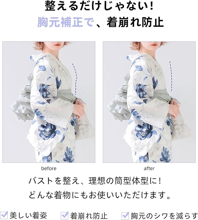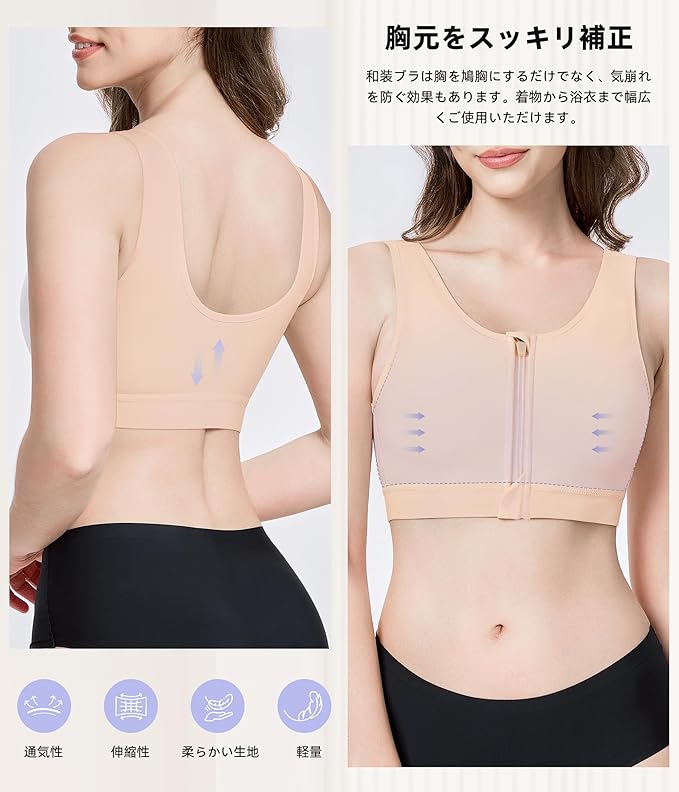 矯正ブラには取り外し可能なパッドでバストのきれいなシルエットを演出!胸元カバーの透けないブラを着る後、清潔に保つのも簡単で、美しい和装をよりエレガントに引き立てます。さらに、胸が揺れないブラの取り外し可能なデザインは清潔さをキープしながら快適に着用できます。