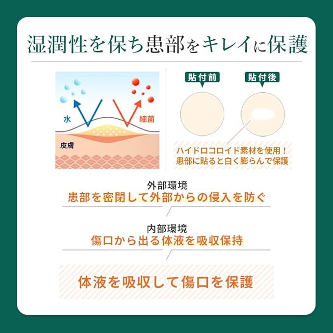 ⭐【ハイドロコロイド素材で患部を保護】 患部を密閉することで外的刺激や水の侵入を防ぎます。<こんな方にオススメ>目立つニキビを保護したい、炎症が気になって触ってしまう、日中もカバーしたい、髪の毛が触れてしまう