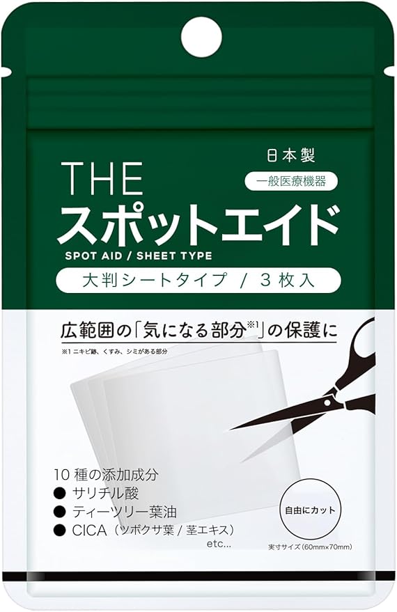 ※パッケージのデザインが異なる場合がございます※⭐【広範囲カバーに】THEスポットエイド 大判シートタイプ3枚入り。スティンキングテスト・パッチテスト済み。 ※すべての人にアレルギー、スティンギング性が現れないということではありません。