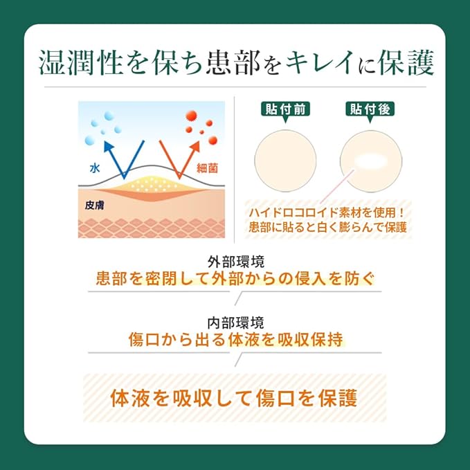 ⭐【ハイドロコロイド素材で患部を保護】患部を水や外的刺激から保護。