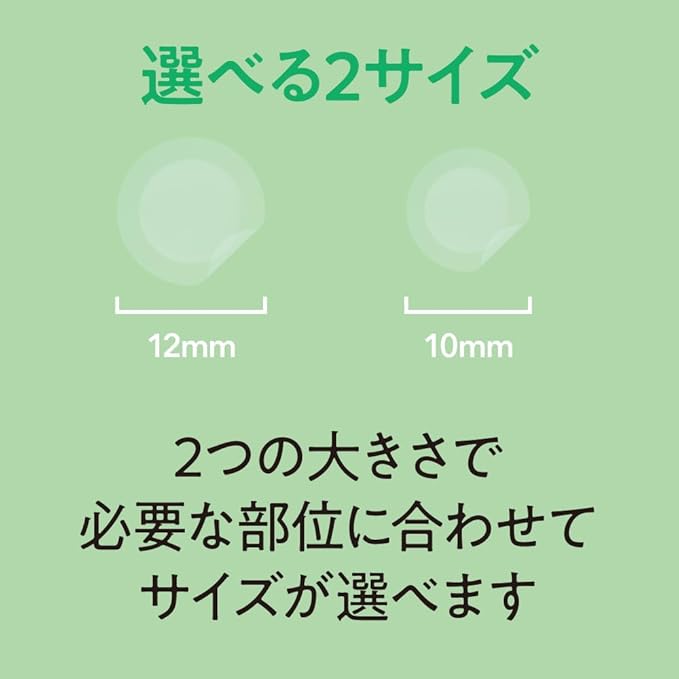 2種類の大きさで貼りたい部分に合わせてサイズを選ぶ (12mm,10mm)