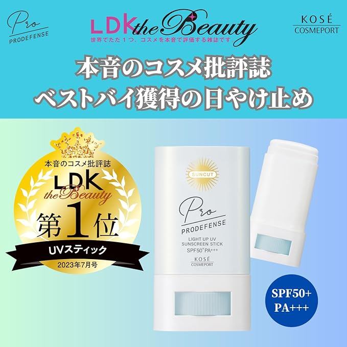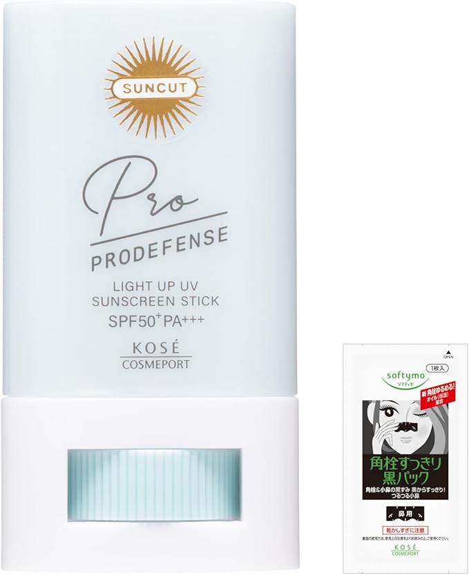 サンカット プロディフェンス ライトアップ 日焼け止め UV スティック ウォータープルーフ ノーカラータイプ SPF50+ PA+++ 20g CICA セラミド ビタミンE誘導体配合 紫外線吸収剤無添加 おまけ付 KOSE | oioioichan