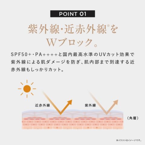【紫外線・近赤外線*をWブロック】 SPF50+・PA++++と国内最高水準のUVカット効果。さらに、肌内部まで到達する近赤外線*もしっかりブロック。 *近赤外線カットパウダー配合
