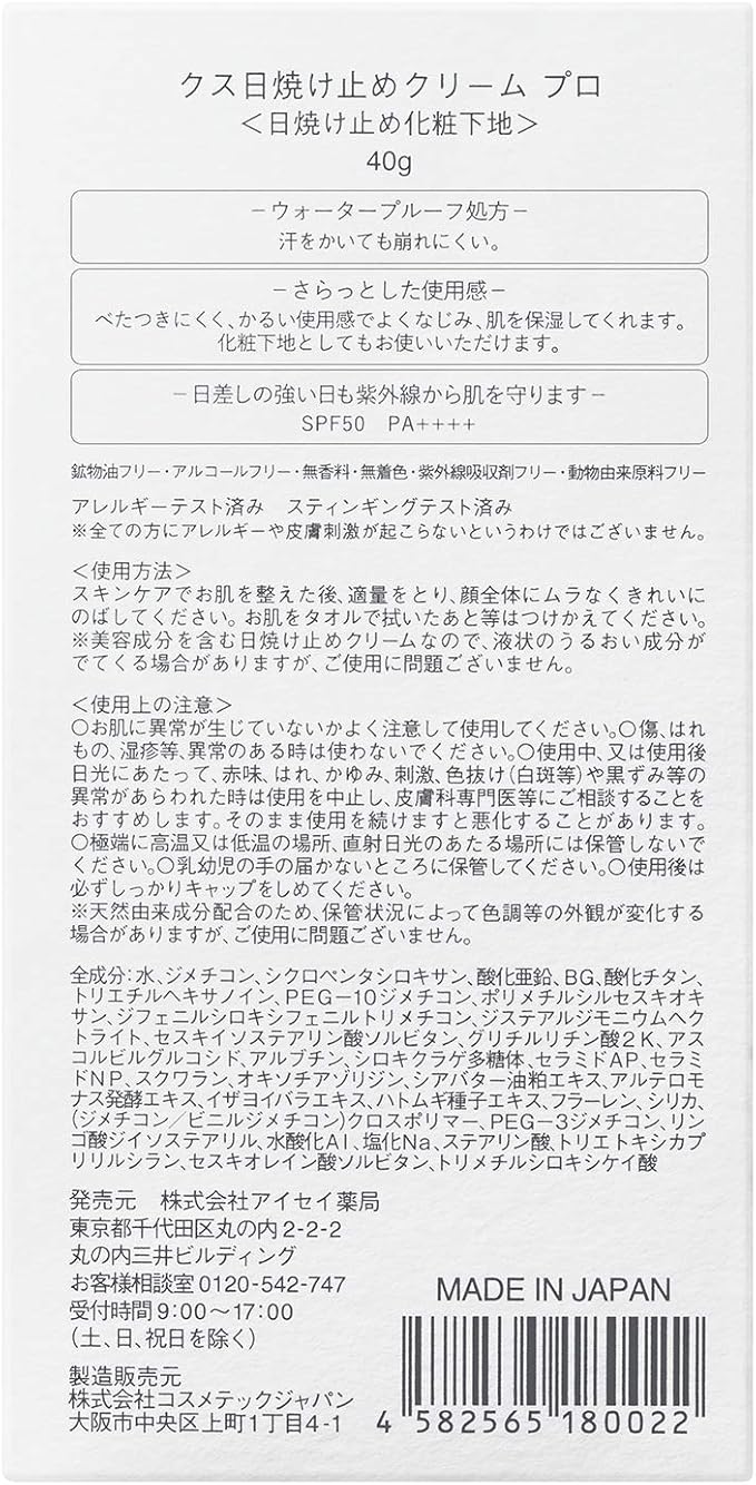 KuSu 【 日焼け止め 化粧下地 クリーム アレルギーテスト済み】 無色 40g [ 顔 ノンケミカル 処方 SPF50 PA++++ ウォータープルーフ 7種の美容成分配合で スキンケアも叶えるUVクリーム しっとり保湿 ] Pro | oioioichan