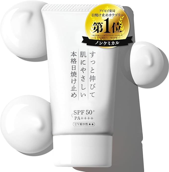 ✨肌にやさしいノンケミカル処方:高カット処方なのにノンケミカル処方で、肌にやさしく年齢とともに敏感になりがちな肌におすすめな本格日焼け止めです。 ✨頼れるウォータープルーフ:ベタつきにくく、さらっとした使用感で汗をかいても崩れにくいのが特徴です。夏場の発汗や海・プールでも安心してお使いいただけます。