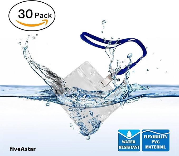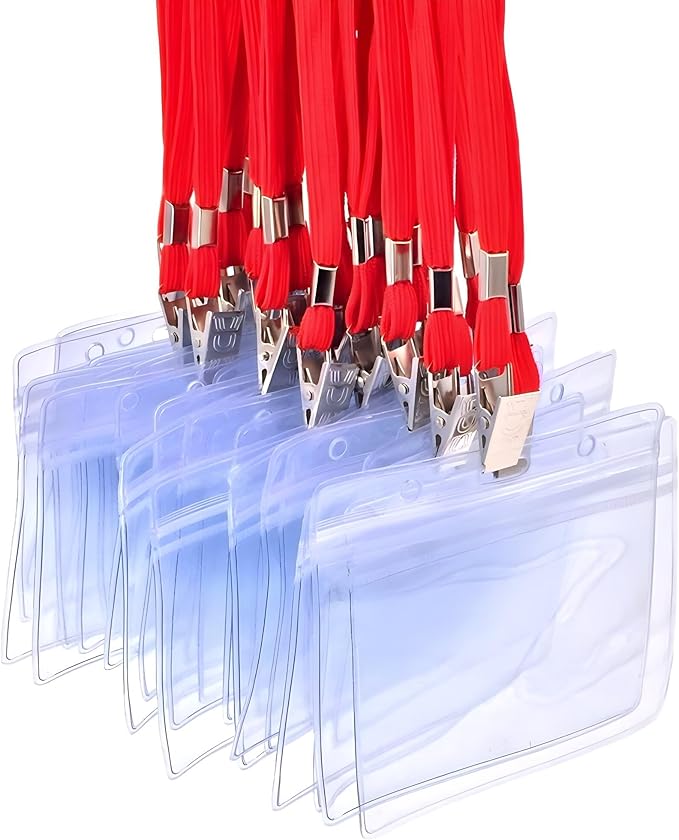 fiveAstar ID カード ホルダー ネックストラップ 名札 吊り下げ イベント スタッフ パス 名刺 社員証 ケース 入れ 首かけ 展示会 防水 セット 横型 タイプ A008 (30, 赤色) | oioioichan
