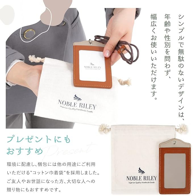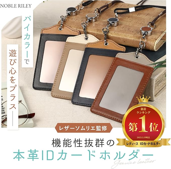 【使い勝手の良いネックストラップ】 本体から簡単に取り外せるので、IDカードホルダーとして使わない時は、パスケースやカードケースとしてもご利用いただけます。例えば、表に社員証、裏にSuicaやICOCAなど交通系ICカードを入れると、家からオフィスまでの移動をスマートにできます。 軽くて柔らかい素材なので、首への負担が少なく、こすれて痛くなりにくいのも◎ 首の後ろの革パーツをスライドして長さを調整できます。フックは360度回転しますので、表裏をクルっと変えられます。リールクリップ付きで約30cmまで伸縮できます。オフィスのセキュリティドアや駅の改札などで、カードを首にかけたままスムーズにかざせるので、ストレスフリーでお使いいただけます。