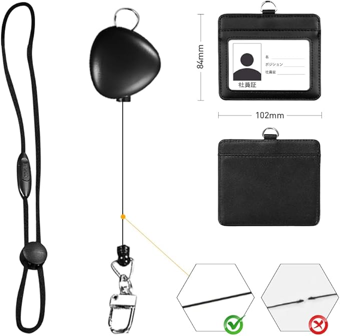Costand IDカードホルダー 社員証 定期入れ ネームホルダー 3mm超薄型設計 防水 耐久 自由長度調整可 軽量で持ち運び 横型 パスケース ネックストラップ 首掛け 両面用 72cm伸縮リール式 通勤 通学 男女兼用 名刺入れ(ブラック) | oioioichan