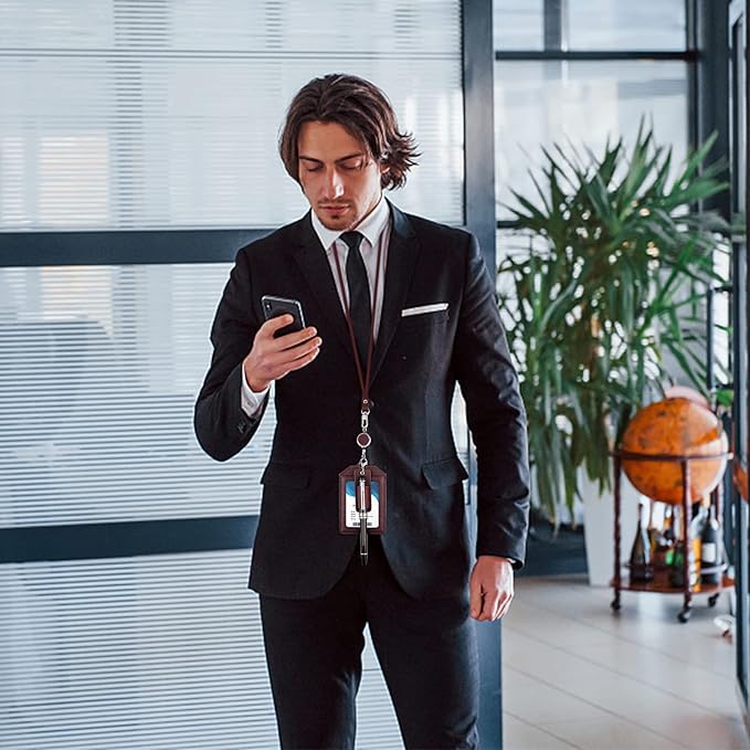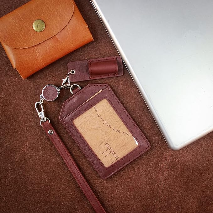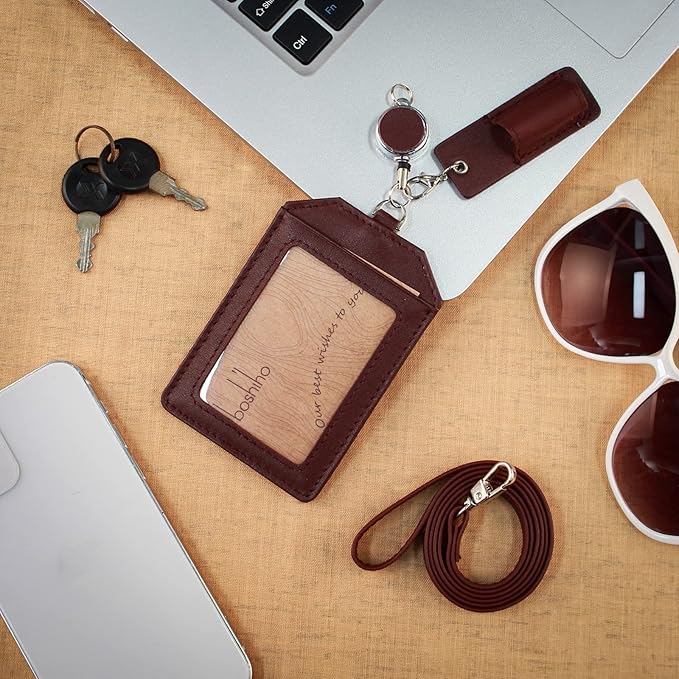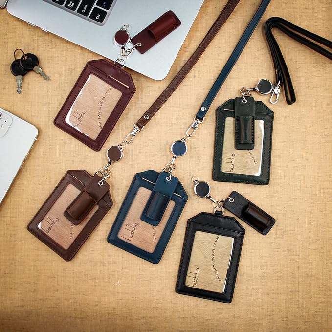 【Boshihoネームホルダー】スーツや洋服にぴったりなデザインで注目されています。柔らかい本革レザーを使用しており、IDカード、セキュリティーカード、定期券など最大3枚のカードを収納できます。首掛けでそのままご使用いただけます。