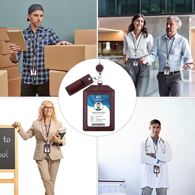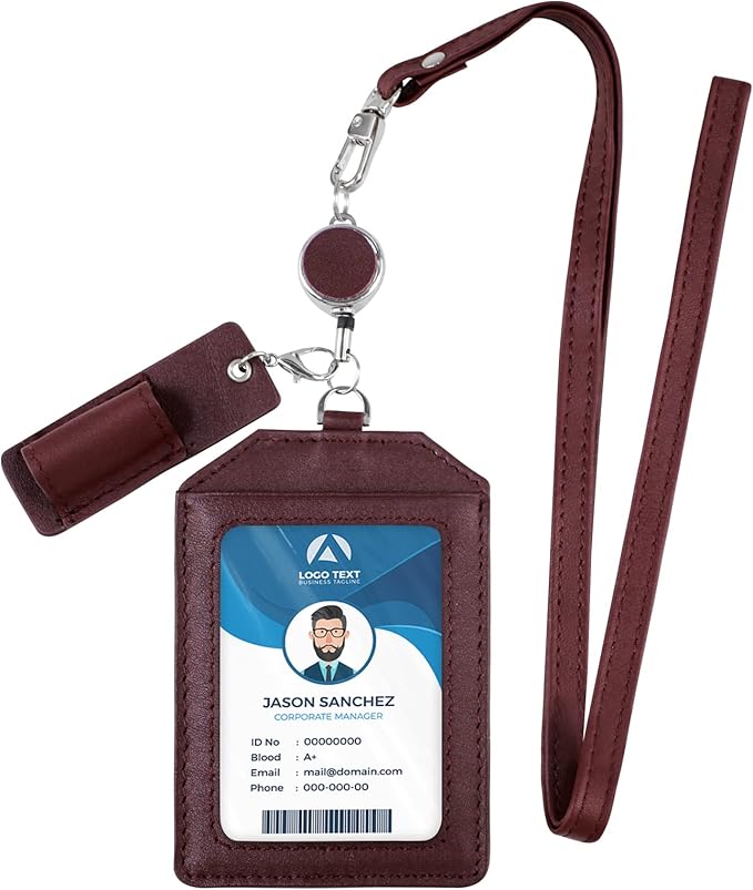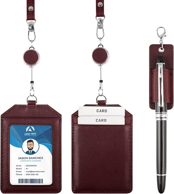 Boshiho IDカードホルダー 本革 カードケース リール付き 縦 首掛け 両面 ネームホルダー 定期入れ 社員証入れ 3枚 idカード収納 首掛けペンホルダー キーホルダー ネックストラップ付き おしゃれ レディース メンズ パスケース 通勤 通学 レッド | oioioichan
