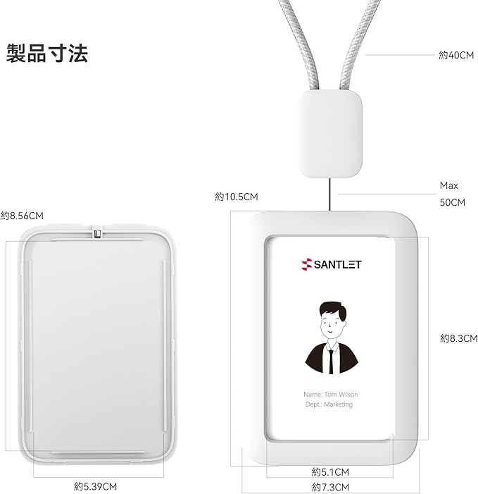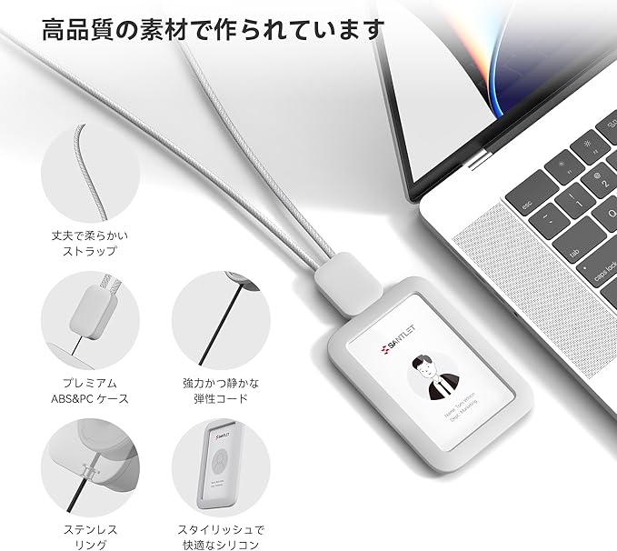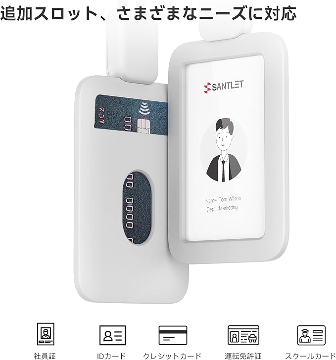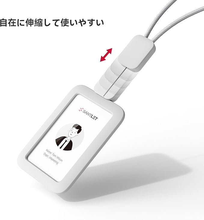 【スタイリッシュ&頑丈】SANTLET IDカードホルダーは、洗練されたミニマルなデザインと高品質なシリコン素材で構成されています。縦型タイプは、見た目のおしゃれだけでなく、胸ポケットに入れられることでも好評です。このエレガントなカードホルダーは、日々頼りになる、誇り高くプロフェッショナルで自信を持って使えます。
