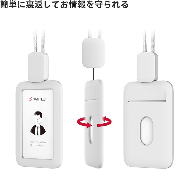 【プライバシーを保護】カードを下に引いて裏返すだけで、個人情報などのプライバシーを守ることができます。カードホルダーは、リトラクターケーシング内の穴にに配置され、反転しないようになっています。