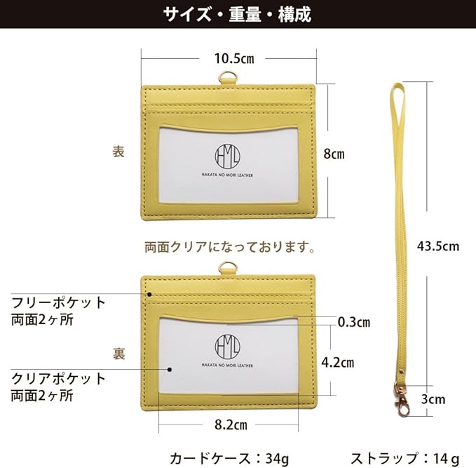 【サイズ】8 10.5センチ (カードポケットを従来のものよりやや幅広く出し入れしやすいように設計) 重さ:34グラム(革製なのに軽量) ストラップ(43.5㎝センチ)金具部分(3センチ)
