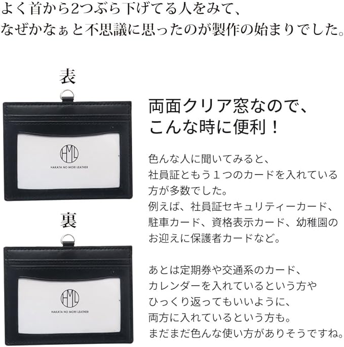【ポイント】両面にクリア素材を使用した窓があるIDカードホルダーです。社員証ともう1つ+αが便利!社員証や入館証が2枚あってもひっくり返すだけ!