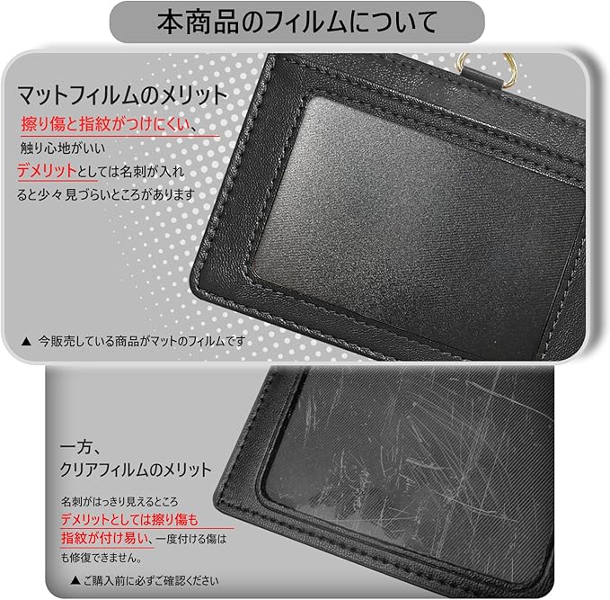 【優質な革製】質感のある革を採用、ソフトな手触りがあるIDカードホルダーです。窓フィルムはPVC素材で、クリアな透明感なのでカード情報ははっきり見えるネームホルダーです。綺麗に仕上げた縫い目、細部までこだわります。