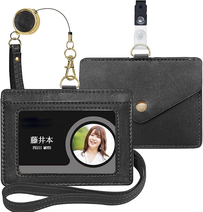 【後ろにポケットあり 】IDカードホルダーの裏にカード入れポケットが付きます、名刺や通勤カード、ICカード、などが入れられます。可愛い封筒のようなボタン留めで取り出しが便利です。名札ホルダー、パスケースやID ケースとしても使えます。カードを探す時間が省かれ、素早く行動することができます。
