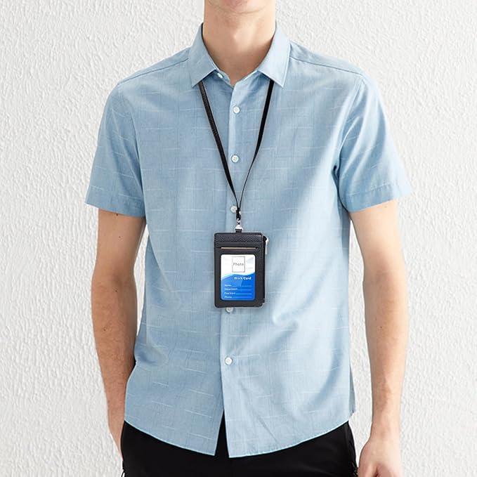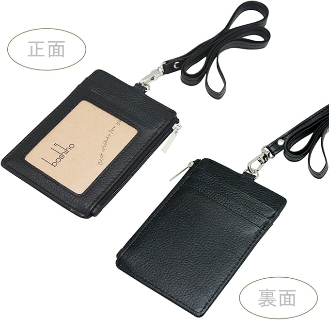 [boshiho] 定期入れ メンズ 本革 パスケース 5枚収納 カードケース 社員証 IDカード 鍵 小銭入れ ネームホルダー 首掛け ネックストラップ付 通勤 通学 ブラック | oioioichan