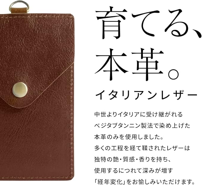 【育てる本革 イタリアンレザー】 イタリアの伝統的な製法で染め上げた本革を使用。飽きのこない革本来の雰囲気を活かし仕上げました。使う時間と共に成長する風合いをお楽しみいただけます。人気 ブランド ならではのこだわりがつまったアイテムです。