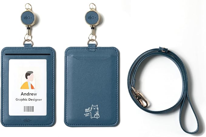 ekax IDカードホルダー ネームホルダー 首掛け 2枚入れ 縦型 干渉防止 伸縮リール式 長さ調節可能 社員証 定期入れ カード入れ 両面読取り スキミング防止 パスケース (仕事猫‐ダークブルー) | oioioichan