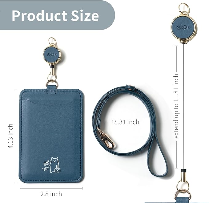 製品サイズ:IDカードホルダー:71x105x3mm、ストラップ:465mm、伸縮式リール:最大290mmまで延長。重さ:54 5g、素材:PUレザー、TPU透明フィルム、ハードウェアパーツ。