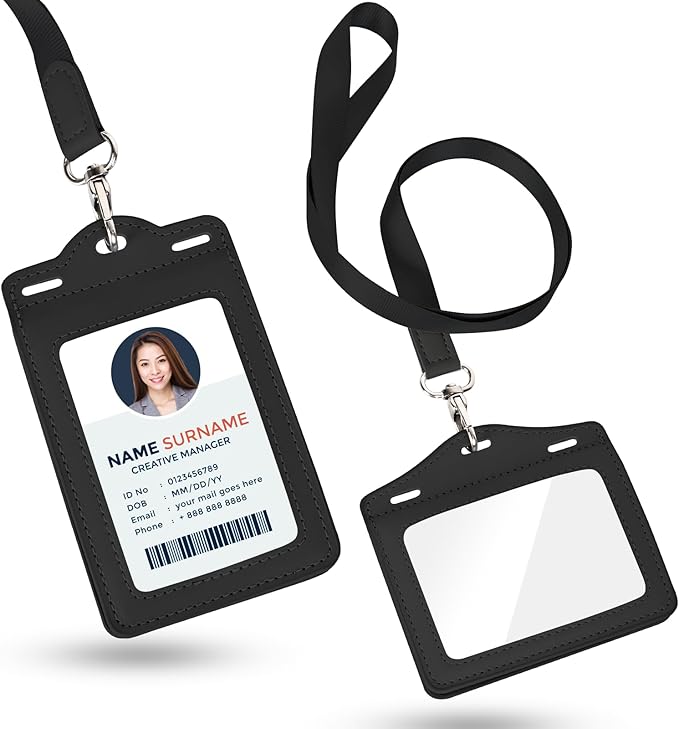 Eon PetChain 厳選牛革製 3層式IDカードホルダー 横型&縦型 IDカードケース 社員証ケース メンズ レディース ネームホルダー 名札ホルダー ネックストラップ カードケース 首掛け 両面用 ネームホルダー パスケース 定期入れ カード1-6枚収納 男女兼用 名刺 パスケース (クラシックブラック, 縦型) | oioioichan