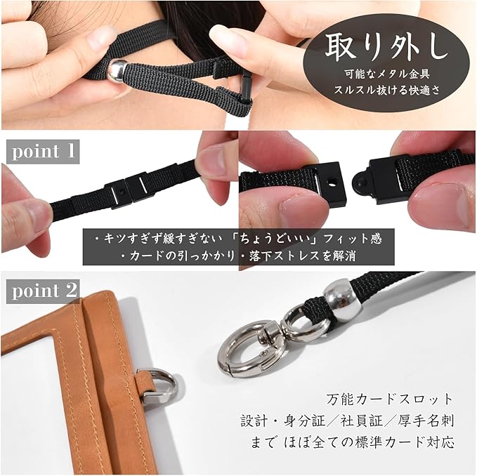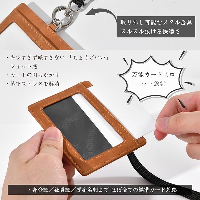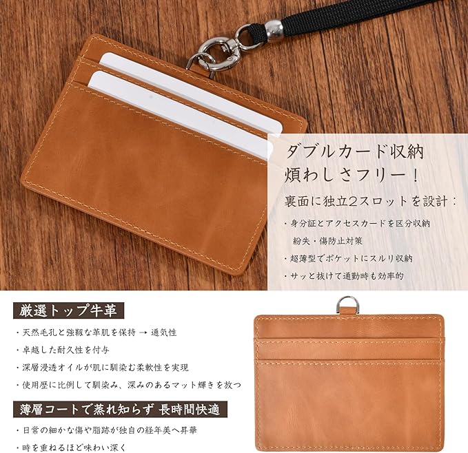 KABANTiFY IDカードホルダー 横型 IDカードケース 本革 社員証ケース カード3枚収納 レディース メンズ ネックストラップ カードケース 首掛け 両面用 ネームホルダー 定期入れ 名刺 名札 パスケース | oioioichan