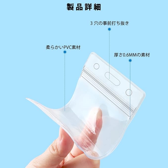 【安全素材】PVCで作られたIDカードホルダーは柔らかいで変な匂いもありません。その上、耐摩耗性と耐溶剤性を持つ、安全と環境保護、室外作業で大活躍です。