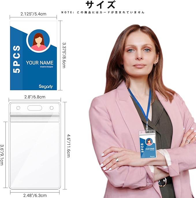 【名札ケース】Segarty idカードホルダー 社員証ケース 5枚 縦型 両面用 ネックストラップ カード 通学通勤 社員証 名刺 展示会 イベント用 パスケースpvc製 防水機能 | oioioichan