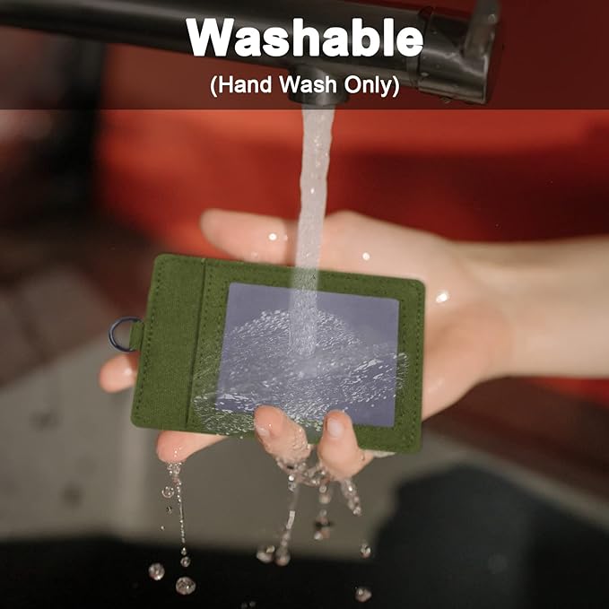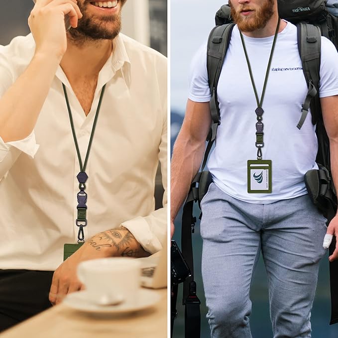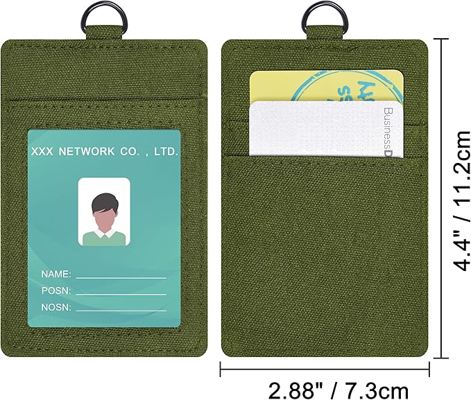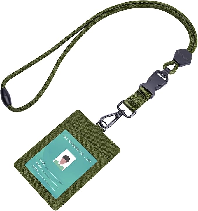Wisdompro IDカードホルダー 縦 ネームホルダー IDカードケース 社員証/名札ケース パスケース 定期入れ 両面 3枚収納 丸紐ストラップ 安全装置付き アーミーグリーン | oioioichan