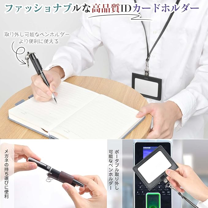 【プレゼント♥同じ色のペンホルダー】ミニペンホルダーは耐久性のあるレザーで作られ、丁寧に設計されているので、安心してご購入いただけます、美しくて合わせやすいです!◆取り外し可能なデザイン:外出時にぺんをカードホルダーに固定し、非常に便利で、紛失することはありません!取り外しが簡単で、そのままサインでき、とても書きやすい;太いボールペンや万年筆も入ります。メガネホルダーやサングラスホルダーとしても使えます;様々な小物と組み合わせることができます。取り付けが簡単で、落下防止ストラップも取り外して使用できます!