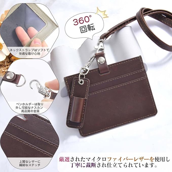 【IDカードホルダー+ペンホルダー】 - IDカードホルダー+ペンホルダー。ICカードがタッチしやすい。 表にカード入れ1つがあります:表の窓フィルムはPVC製で、透明で耐久性があり、長い期間の使用に耐え、傷や汚れに強く、いつも新品のような光沢を保ちます。 裏にはカードポケット2つがあります:交通系カード、IDカード、、社員証、映画館のなどを収納できます。 上質で丈夫なレザー、スタイリッシュでシンプル。 ◆サイズ仕様(約):幅10cm 高さ8.5cm 厚さ0.3cm、ペンホルダー:高さ6cm 幅2cm、ショルダーストラップ:長さ37cm 幅1cm、仕様:カード入れ 3/取り外し可能ペンホルダー 1。
