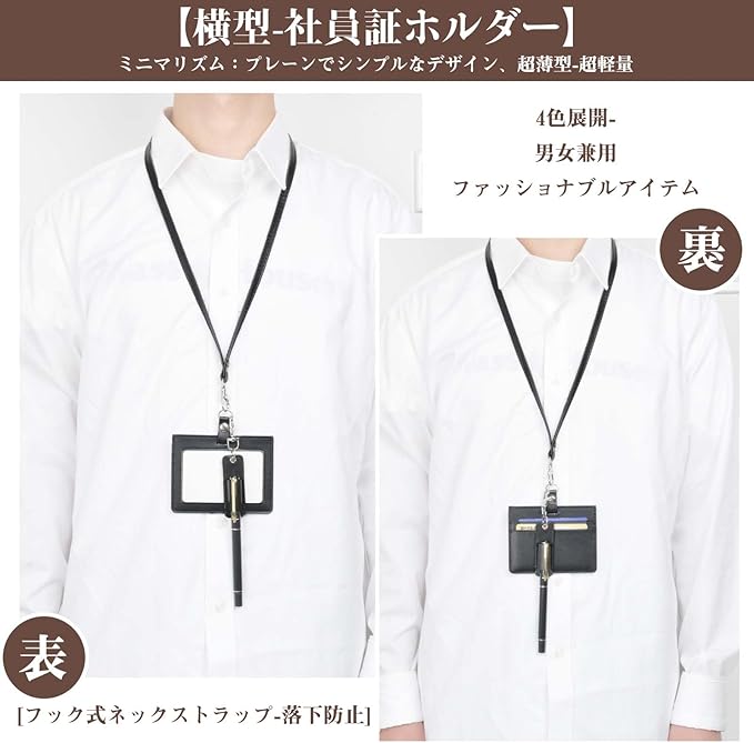 IDカードホルダー 横型 IDカードケース 社員証ケース ネームホルダー ギフト ペンホルダー付き メンズ 名札ケース 首下げ ネックストラップ カードケース 首掛け クリップストラップ付き 両面用 idカードホルダー パスケース カード3枚収納 定期入れ 名刺 名札 社員 証 身分証ケース card holder | oioioichan