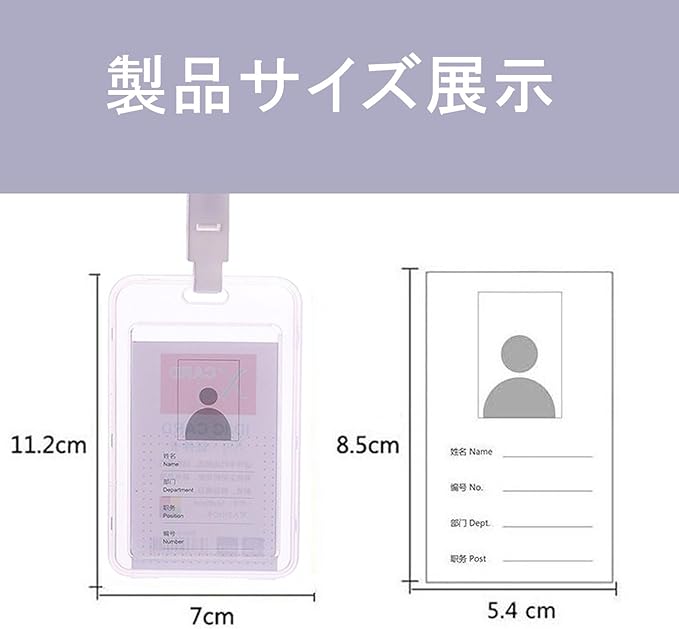 FamGift ネームホルダー 1枚入れ 縦型 吊り下げ名札 社員証 透明色名札ケース カードホルダー 首掛け 両面用 ネックストラップ カード 通学通勤 社員証 名刺 展示会 イベント用 パスケースビニール製 防水機能 | oioioichan