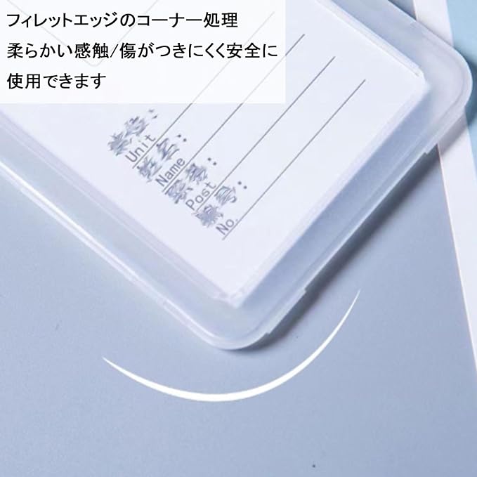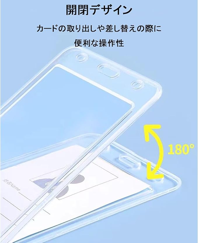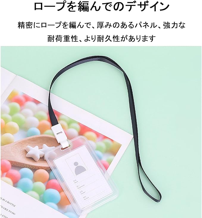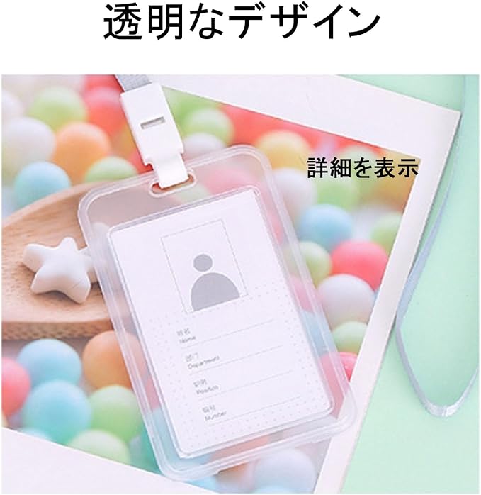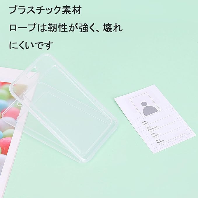 【材質】プラスチック(ケース)、ポリエステル(紐) カラー:ケース(クリア)+紐(ブラック)透明な名札ホルダーで、カードがよく映ってます。