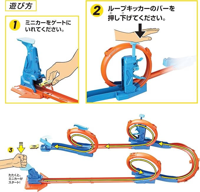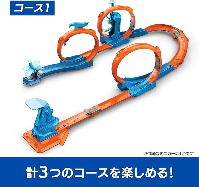 【内容】3通りのコースでループとスピードが楽しめるプレイセットが登場!ランチャーからミニカーを発射させ、ゴールを目指して走らせよう!ミニカー1台付き。