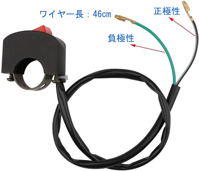 ユニバーサルバイクチューニングパーツハンドルスイッチボタンは46cmワイヤー付きで、バイクのどこにでも取り付けることができ、標準定格はDC12V/10Aです。